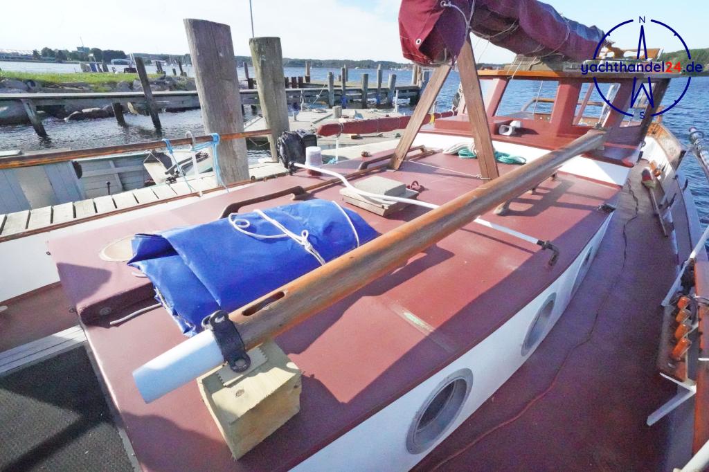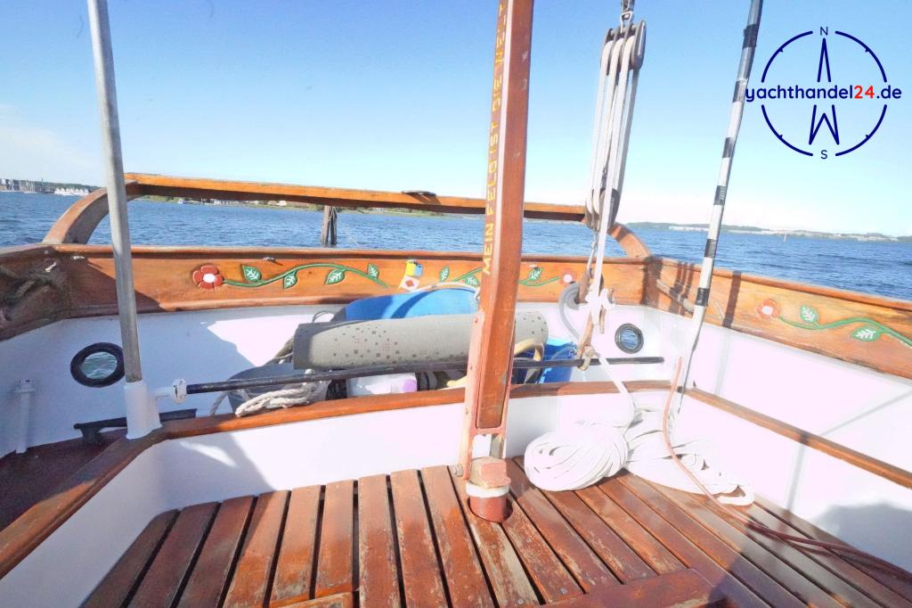 gepflegte pommersche Schlup, Gaffel getakelt, verkleinerter Nachbau dieser Traditionssegler, vom Vater gezeichnet und gemeinsam, mit dem Sohn in den Jahren 1984/1985 gebaut.
